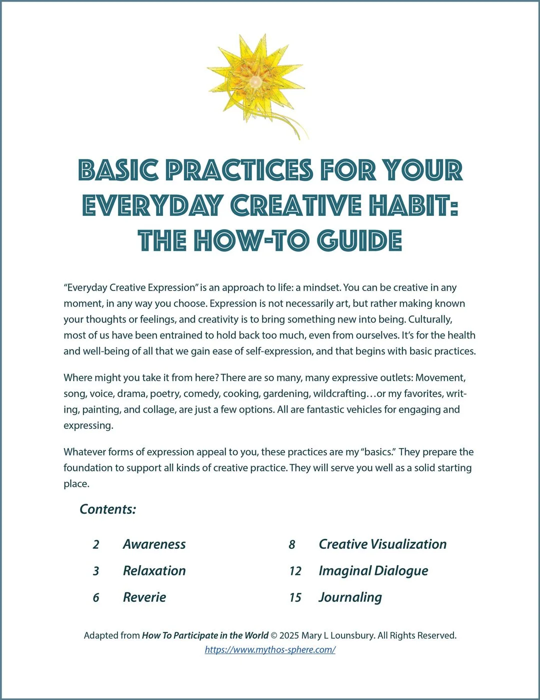 As a Thank You for subscribing, you’ll get a link to download my 18-page How-To Guide: Practices for Your Everyday Creative Habit, about creating a foundation for your authentic expression through simple, everyday practices.